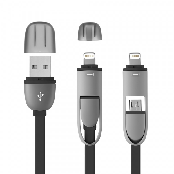Cabo 2 Em 1 Usb Com Adaptador Para Iphone Preto